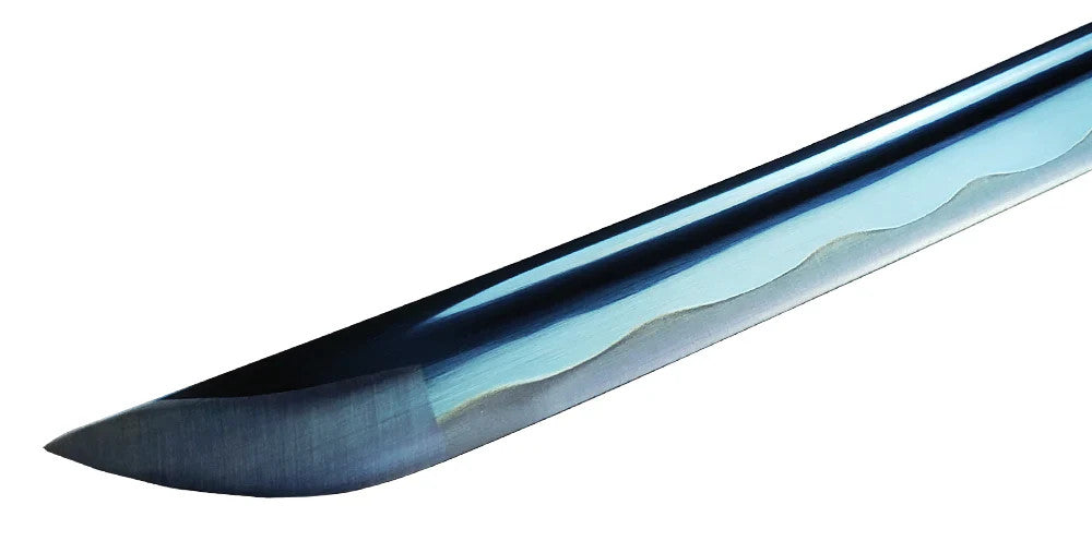 This beautiful blue blade features integrated Bo-Hi on the blade. Bo-Hi is commonly known as blood grooves, but that is a common misconception. The purpose of the Bo-Hi is to help reduce the weight of the katana, it actually has nothing to do with channeling the blood. Making the Katana lighter enables the user to wield the katana better and puts less stress on the hands. Not to mention it benefits some advance cutting techniques that requires the katana to change direction rapidly.