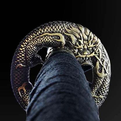 From the Musha collection comes this intricately hand forged “Mizuchi”(Water Dragon) Katana. Full tang 1045 high carbon steel makes this a resilient katana that is razor sharp right out of the box.