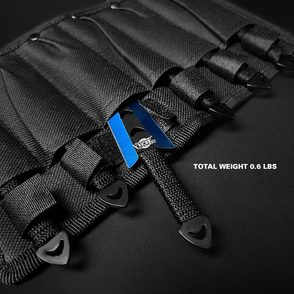 Feel the power of these handmade Falcon 6 piece 6" Overall Arrow Head Throwing Knife Set. The 440 stainless steel blades and arrowhead style promise precision accuracy and excitement! With a 3" electric blue print blade and nylon wrapped handles, each knife is designed for optimal grip and superior performance, plus a nylon pouch for easy carrying. Unleash your skills with this remarkable set – are you ready?